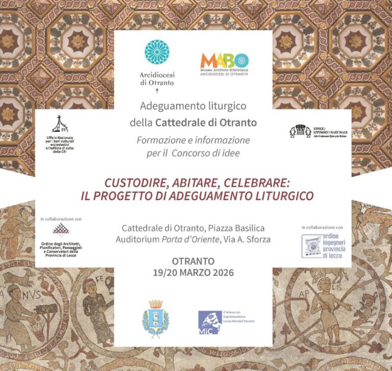 La diocesi di Otranto pubblica il Bando di concorso per l’adeguamento liturgico della Cattedrale di Santa Maria Annunziata. La partecipazione al concorso è riservata a gruppi di lavoro coordinati esclusivamente…