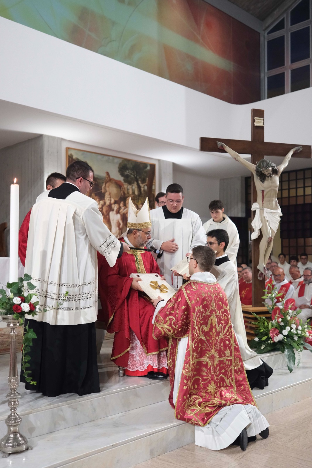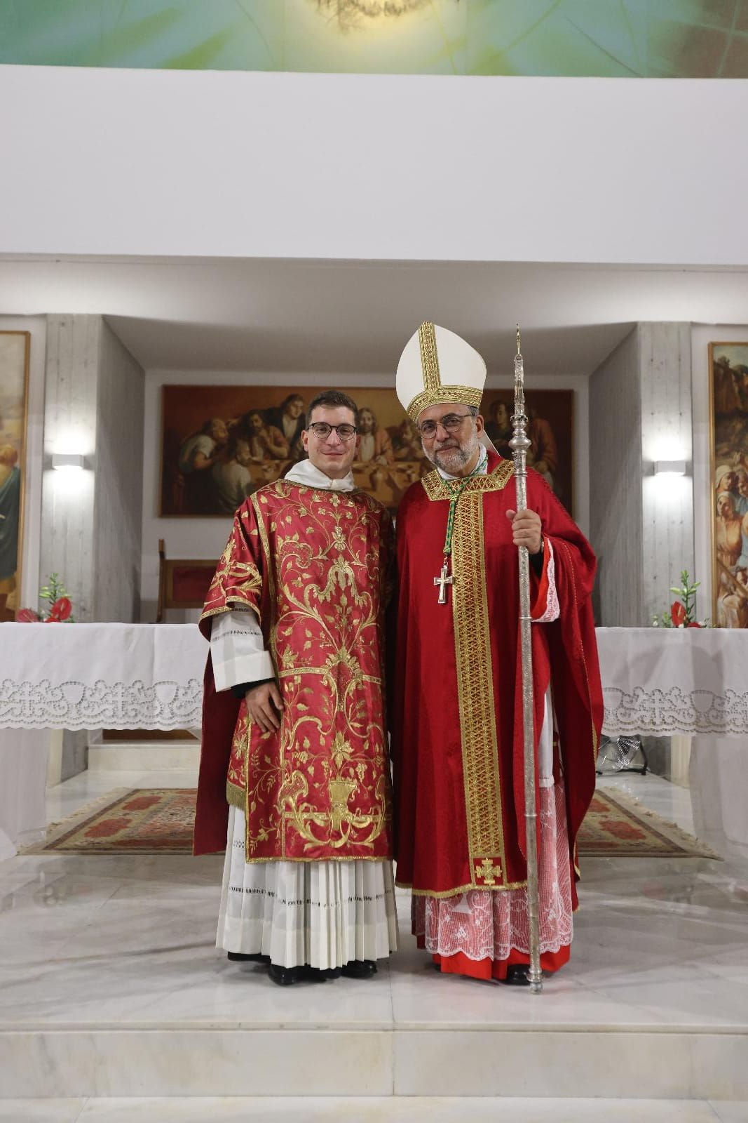L’occasione è data dal ricordo vivo degli Ottocento Martiri Idruntini, dal titolo della parrocchia dedicata a San Sebastiano, dalla celebrazione della memoria del Martirio di San Giovanni Battista e dal Santo dal quale prende il nome il diacono: Stefano. Questi ultimi due poi sono accomunati – ha sottolineato mons. Neri – dall’aver fissato lo sguardo su Gesù: Giovanni indicando in lui l’Agnello di Dio, Stefano contemplando, durante il martirio, i cieli aperti e la gloria del Signore.