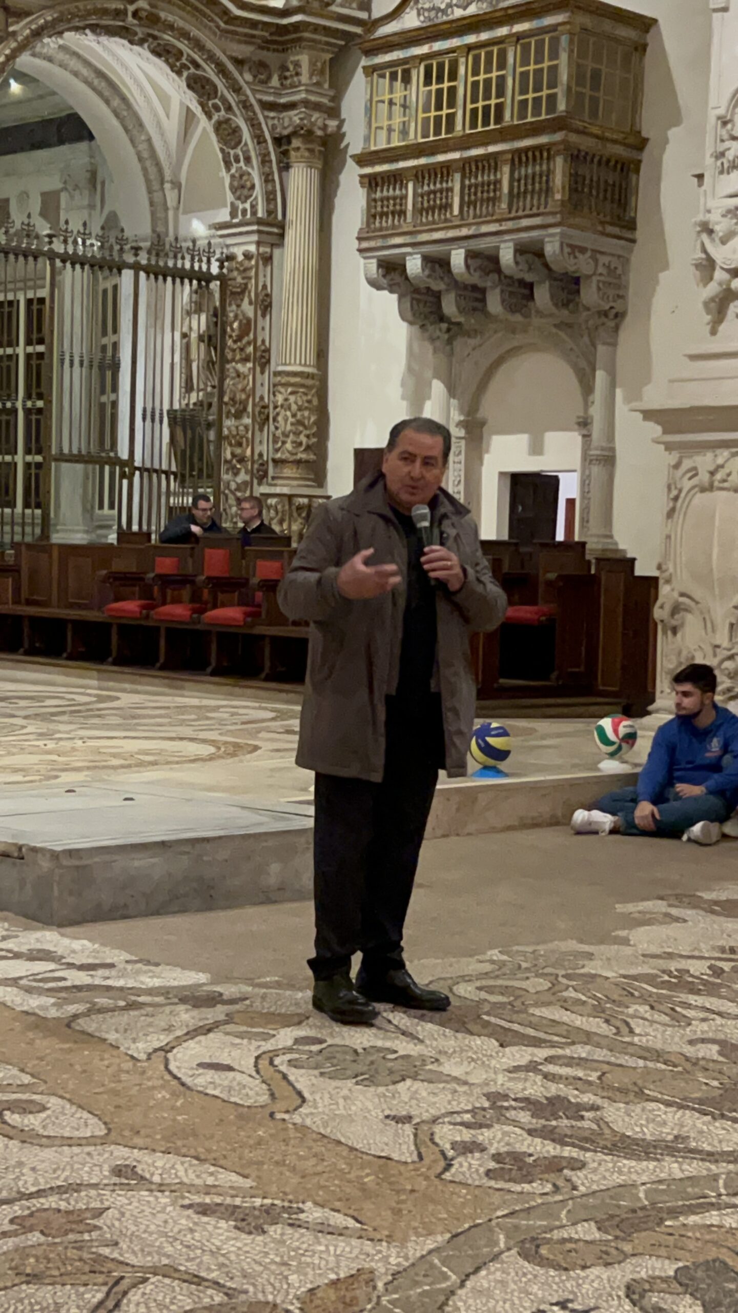 Dopo un momento di festa all’esterno, all’interno della Basilica Fefè De Giorgi, allenatore della Nazionale italiana maschile di Volley, ha raccontato la sua testimonianza.