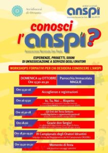 Domenica 19 ottobre, dalle ore 15.30 alle ore 20.30, presso la Parrocchia Immacolata in Maglie, è in programma un pomeriggio di workshop formativi per scoprire da vicino il mondo ANSPI: