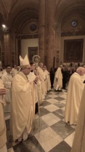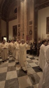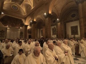 “Carissimi fratelli, carissime sorelle, in questo anno ricordiamo gli otto secoli della Pasqua di san Francesco d’Assisi”, ha detto nell’omelia Mons. Francesco Neri. “Lasciamo dunque che il Santo di Assisi ci accompagni ad entrare nel mistero che riempie la Santa Messa Crismale. Ci guideranno in particolari tre suoi Scritti: la Lettera a tutti i fedeli (48-56: FF 200-202), la Lettera a tutto l’Ordine (21-26: FF 220-221), e il Testamento (6-10: FF 113)”.
