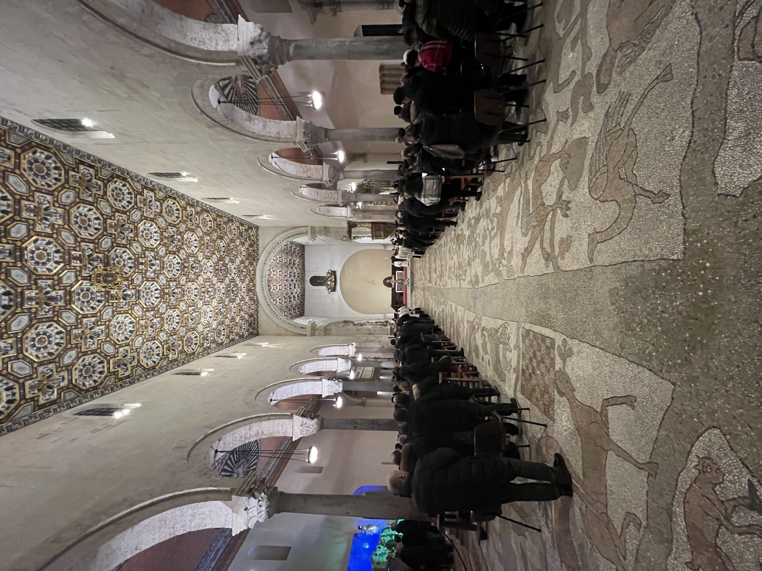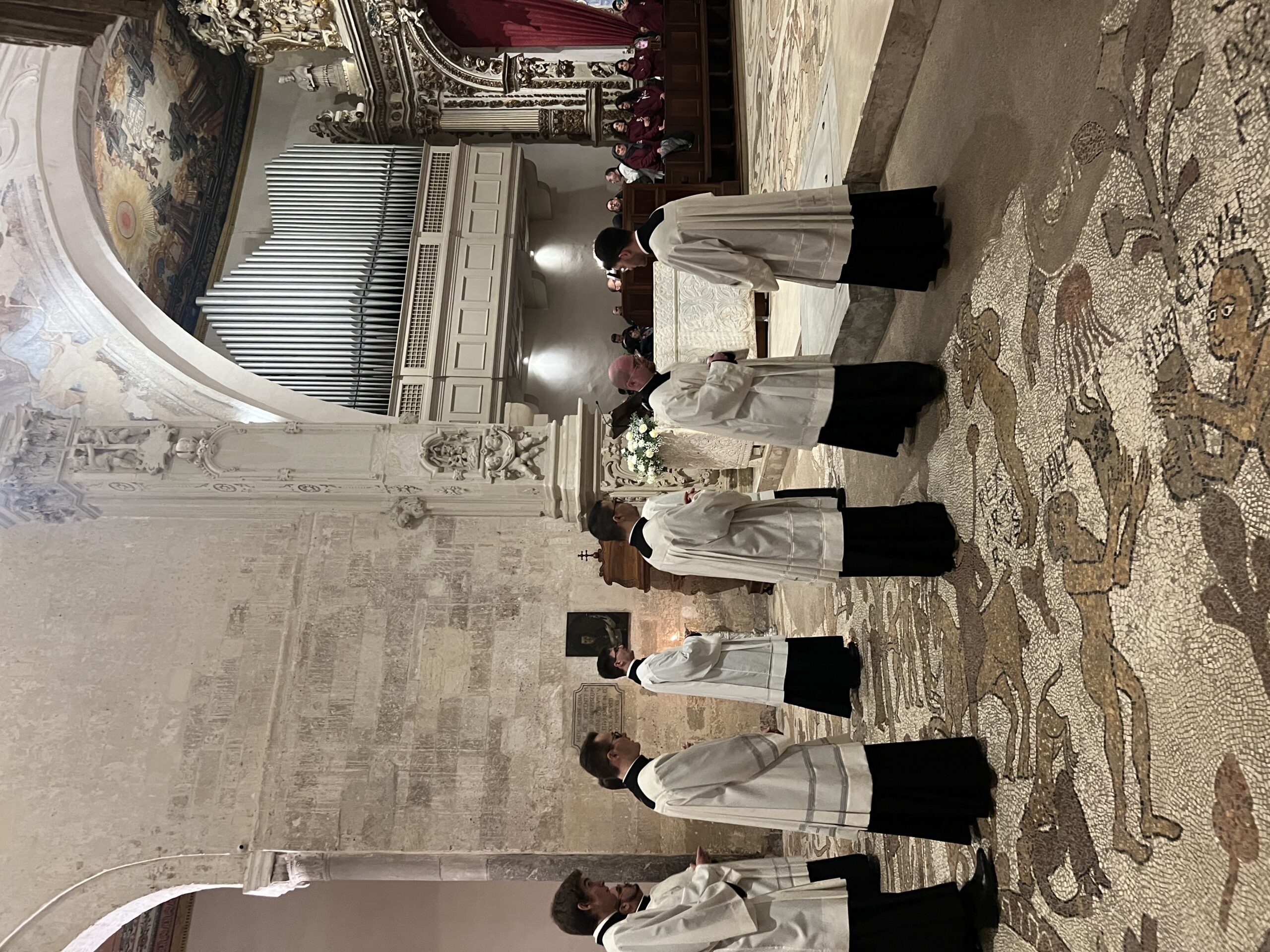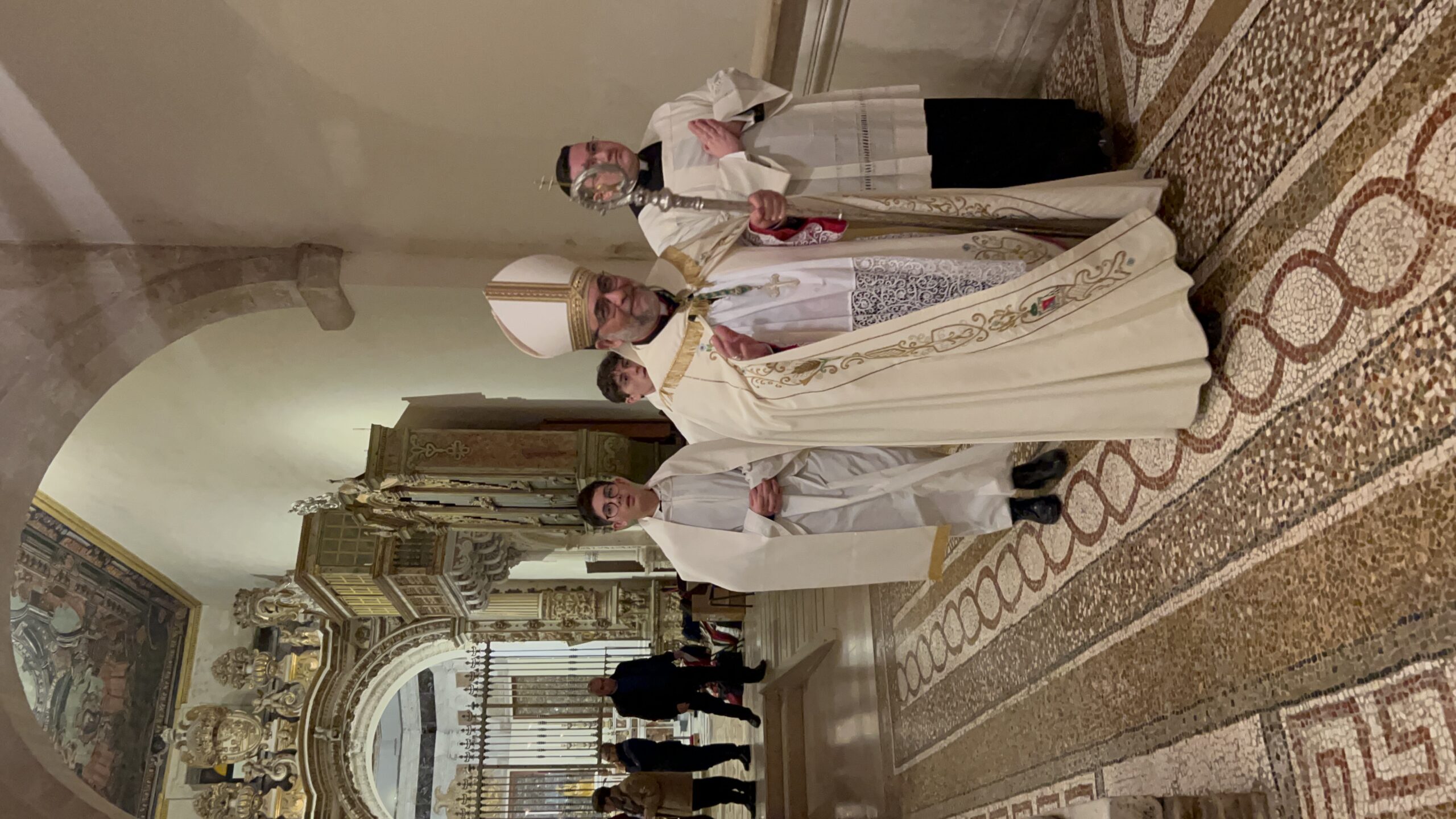 Mons. Francesco Neri ha accolto gli ospiti con entusiasmo: “Benvenuti in questa Cattedrale unica caratterizzata dalla bellezza del mosaico che calpestiamo che racconta storie della salvezza dell’umanità, caratterizzata anche dal sangue di chi, per la fedeltà al Signore, ha accettato di perdere la propria vita. Sono molto contento di questo evento di grazia che segue di pochi giorni l’inizio del Giubileo. Saluto tutti voi con grande affetto”.