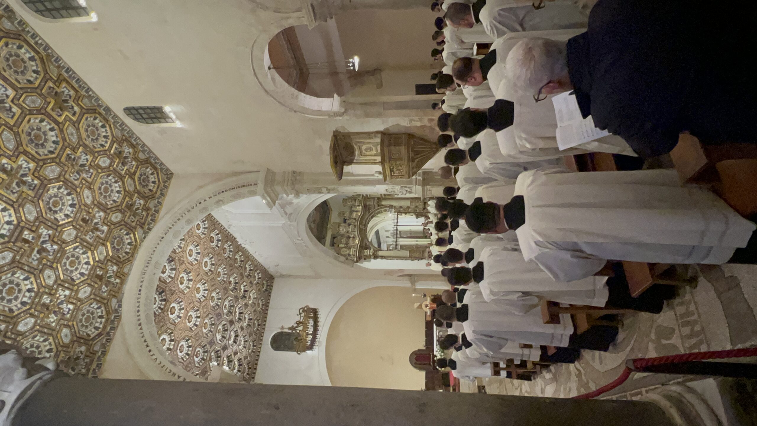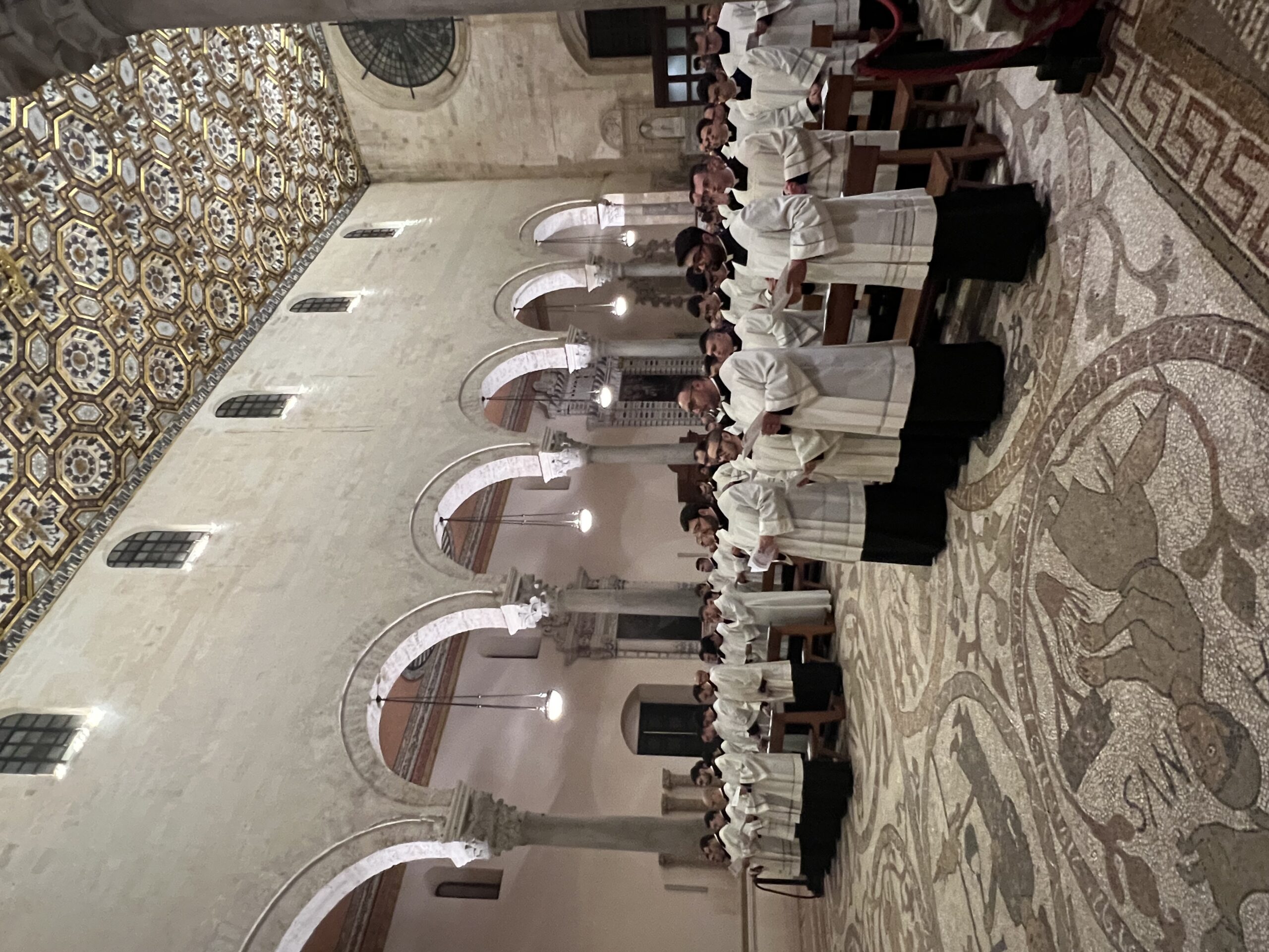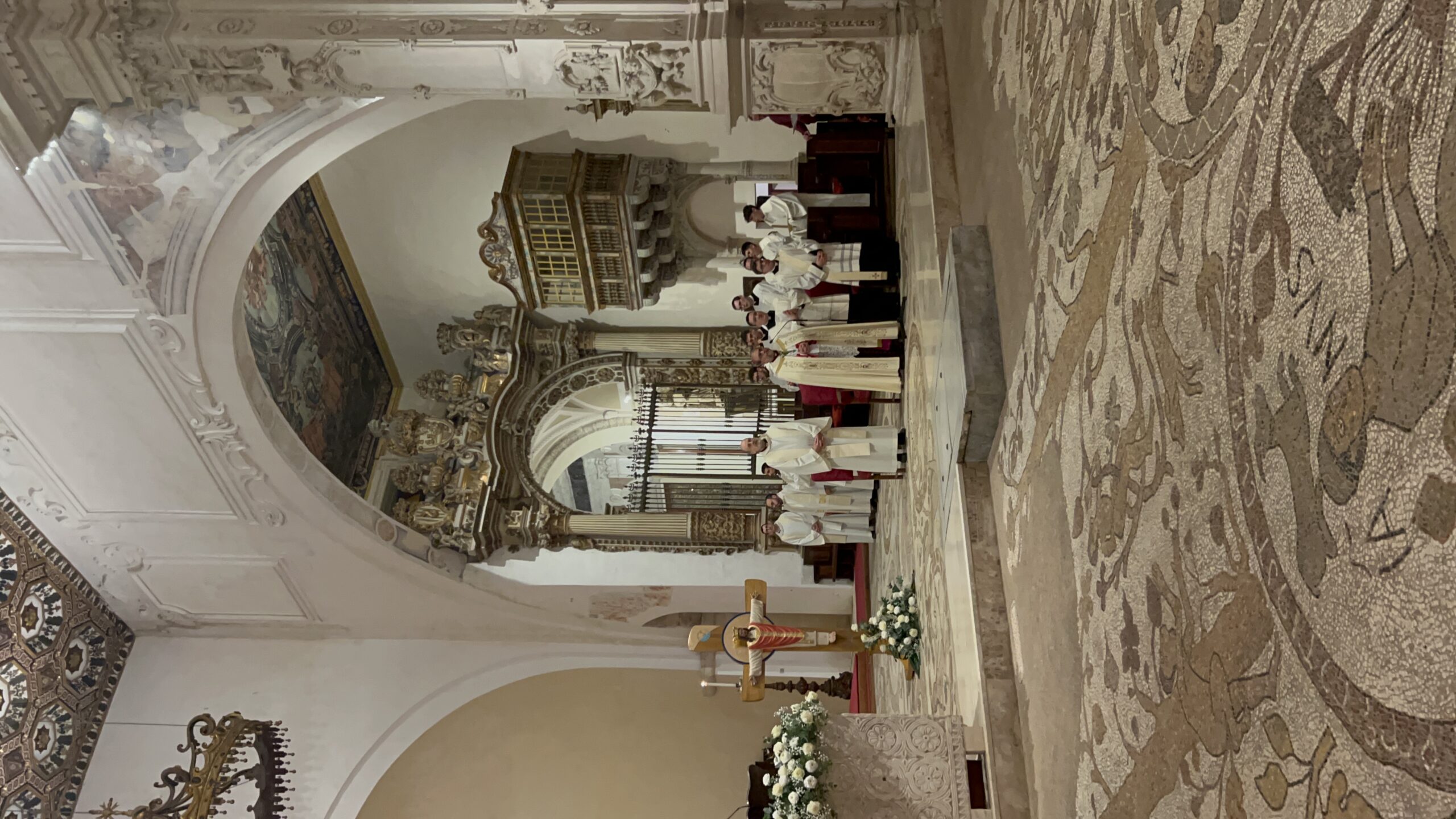Mons. Francesco Neri ha accolto gli ospiti con entusiasmo: “Benvenuti in questa Cattedrale unica caratterizzata dalla bellezza del mosaico che calpestiamo che racconta storie della salvezza dell’umanità, caratterizzata anche dal sangue di chi, per la fedeltà al Signore, ha accettato di perdere la propria vita. Sono molto contento di questo evento di grazia che segue di pochi giorni l’inizio del Giubileo. Saluto tutti voi con grande affetto”.