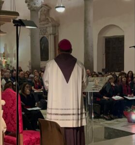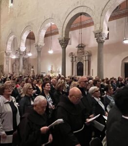 “Francesco d’Assisi affronta la tribolazione superando se stesso”, ha detto Mons. Francesco Neri. “Lo Spirito Santo agisce in lui, nelle sue sofferenze vive la crisi orientandosi a Dio. Anche Santa Chiara vivrà il suo momento di crisi nella morte ringraziando Dio. Sia nella salute che nella malattia, nella buona e nella cattiva sorte, dobbiamo rimanere orientati verso Dio e ringraziarlo sempre. Abbiamo tanti problemi e difficoltà e potremmo dire ‘cosa mi importa di impegnarmi per la democrazia, per la pace a Gaza? Ho tanti guai per fatti miei’. Ma San Francesco non ha fatto cosi”.