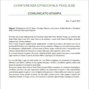L’arcivescovo mons. Francesco Neri, unitamente a tutta la Comunità diocesana di Otranto e in piena comunione con la Conferenza Episcopale Pugliese, esprime profonda vicinanza a Papa Leone XIV per gli attacchi ai suoi inviti alla pace.