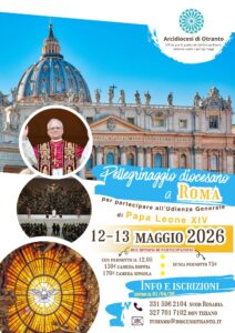 L’Arcidiocesi di Otranto incontrerà Papa Leone XIV a Roma mercoledì 13 maggio p.v. nell’Udienza generale, ricordando anche l’anniversario della canonizzazione dei nostri Santi Antonio Primaldo e Compagni, Martiri di Otranto.